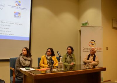 Posteriormente se iniciaron charlas paralelas en 3 auditorios, en total 22 presentaciones distribuidas en sus tres ejes temáticos: experiencias de innovación docente, desarrollo curricular e investigación en educación en ingeniería, finalizando con un panel con autoridades de la facultad y de la universidad.