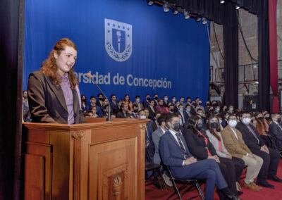 La celebración tuvo como protagonistas a egresados y egresadas de las carreras Ingeniería Civil, Ingeniería Civil Aeroespacial, Ingeniería Civil Química e Ingeniería Civil Mecánica y contó con la presencia destacada de la vicerrectora de la Universidad de Concepción Paulina Rincón, el decano de la facultad Pablo Catalán y el vicedecano Eduardo Balladares.