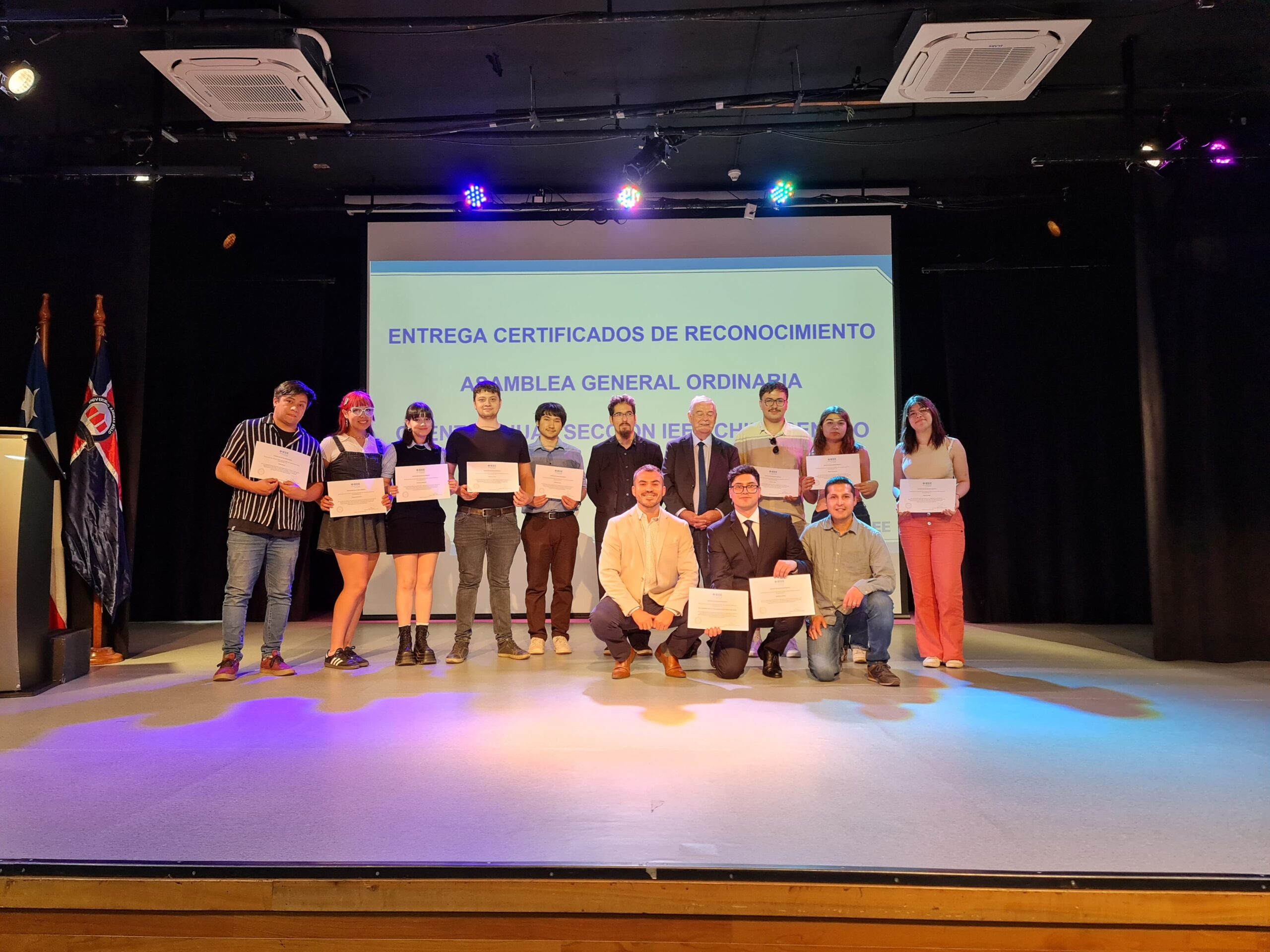 Los integrantes del grupo IEEE PES UdeC Student Chapter (IEEE Power & Energy Society UdeC) recibieron un reconocimiento por organización del Congreso INGELECTRA 2024, que reunió a más de 110 asistentes y participaron más de seis universidades. La Asamblea General Ordinaria de IEEE Chile Centro se realizó en Santiago y participó Gustavo Vega (presidente), Melisa Recabarren (vicepresidenta) y Angeles Ortega (tesorera); Millaray Rodríguez A. (Secretaria) y Valentina Vega C. (Webmaster) también fueron reconocidas, pero no pudieron asistir.