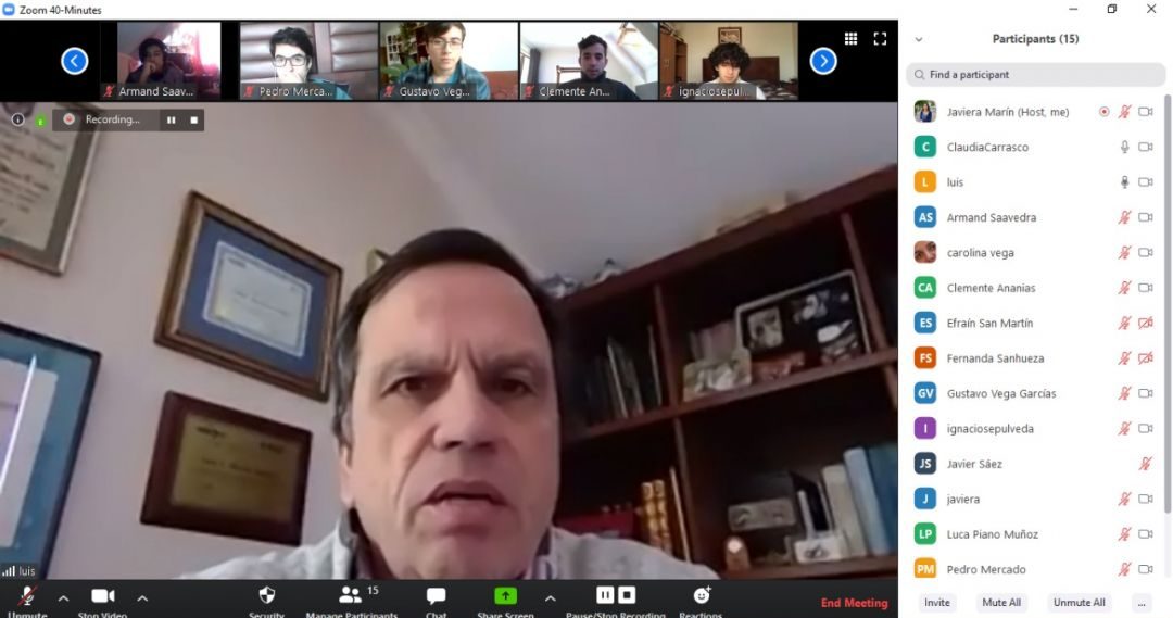 En un encuentro online por medio de la plataforma Zoom donde participaron 13 jóvenes, el decano relató a los estudiantes las diferentes posibilidades que se les abren al ingresar a esta Facultad centenaria. “El año pasado cumplimos cien años junto a la Universidad de Concepción que inició con cuatro carreras, entre ellas Química Industrial, hoy Ingeniería Química, y después nacieron las otras especialidades que actualmente tenemos”, comentó.