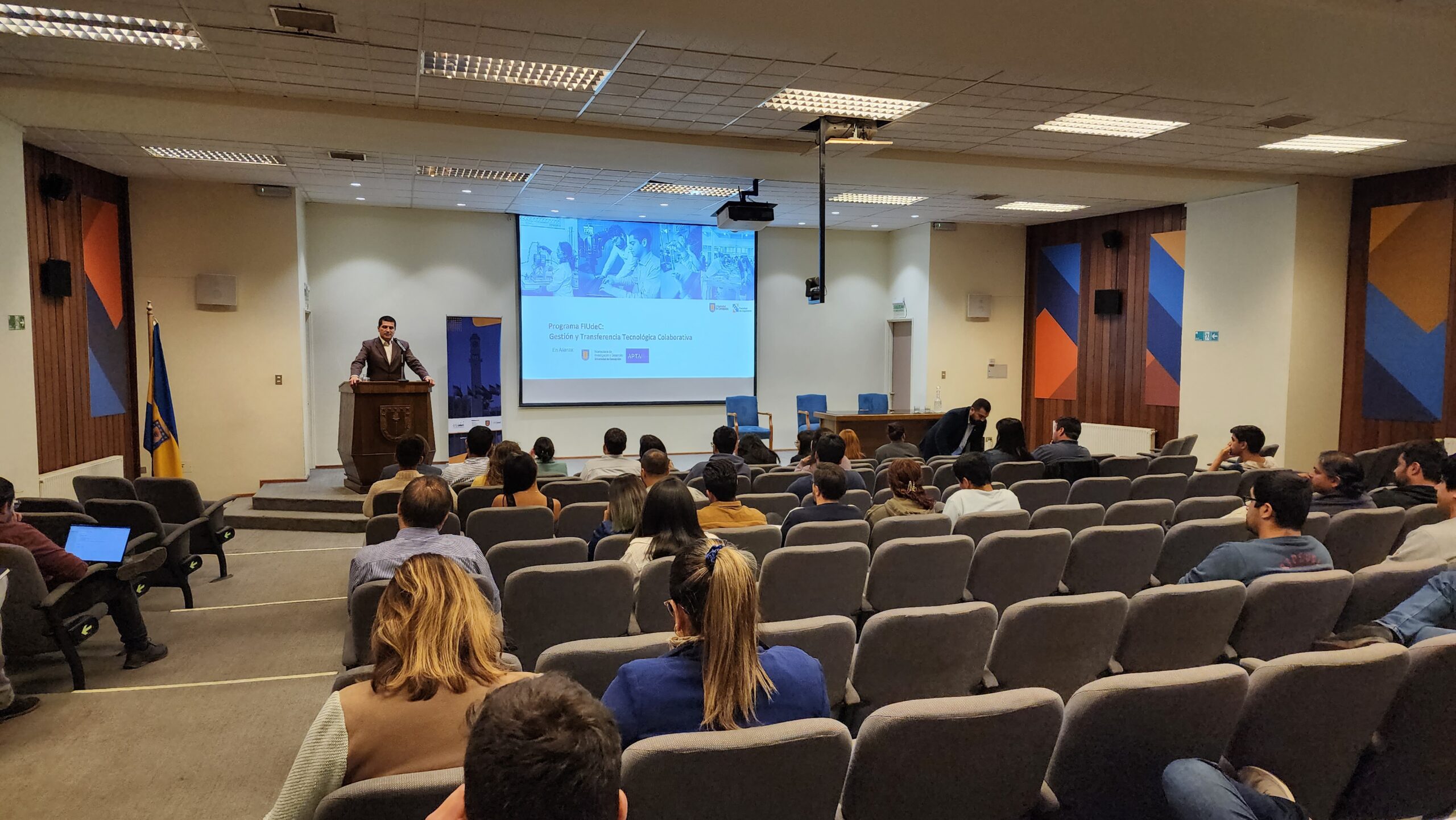 Más de 50 asistentes tuvo la primera sesión del programa de gestión y transferencia colaborativa que se realizó en el auditorio Salvador Gálvez para académicos, gestores tecnológicos, investigadores y alumnos de postgrado de la Facultad de Ingeniería.